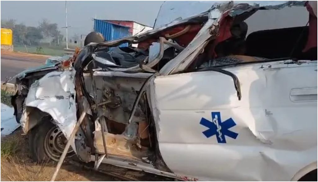 The crash took place near the Jagannath petrol pump in the Athmagola police station area, close to Sabnima village. According to police, the impact was so severe that the ambulance was completely destroyed.