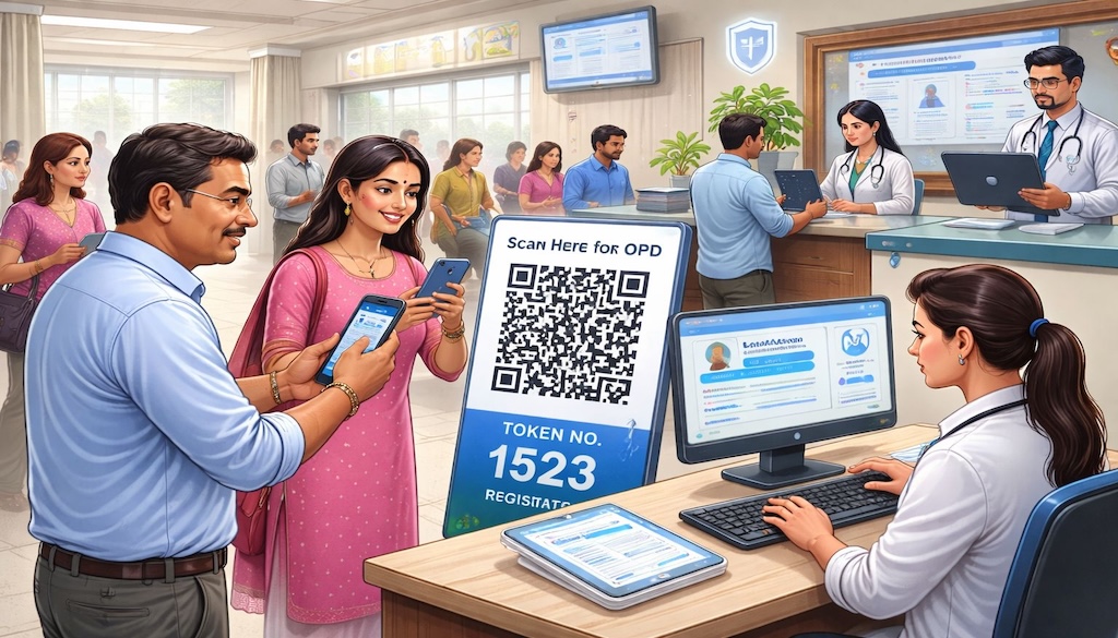 Under the Scan and Share facility, patients no longer need to stand in long queues to obtain OPD slips. By scanning a QR code, they receive a digital token number, which is then used to complete the registration process seamlessly.