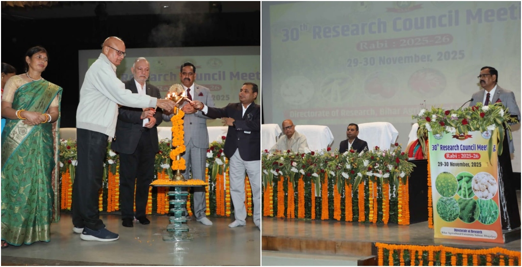 Bhagalpur: Bihar Agricultural University (BAU), Sabour, held its 30th Research Council Meeting for Rabi 2025-26 on Friday, welcoming scientists, experts, and farmers from across the state. The event was chaired by Vice Chancellor Dr. D.R. Singh and attended by eminent scientists, including Dr. Ram Bhajan Singh from GBPUAT, Pantnagar, and Dr. Y.S. Shivay from ICAR-IARI, New Delhi. Progressive women farmers representing three agro-climatic zones—Seema Sinha from Katihar, Rinku Devi from Banka, and Annu Kumari from Patna—shared their experiences, highlighting the important role of women in Bihar’s agriculture.