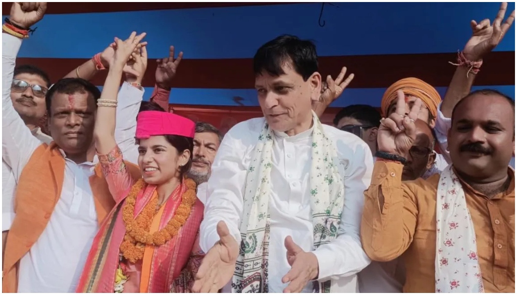 Patna: Bihar’s 2025 Assembly elections saw a surprising new entrant on Friday, as celebrated singer Maithili Thakur filed her nomination from the Alinagar constituency under the banner of the Bharatiya Janata Party (BJP). The nomination and blessing ceremony was held in Benipur, with Union Minister of State for Home Affairs Nityanand Rai in attendance.