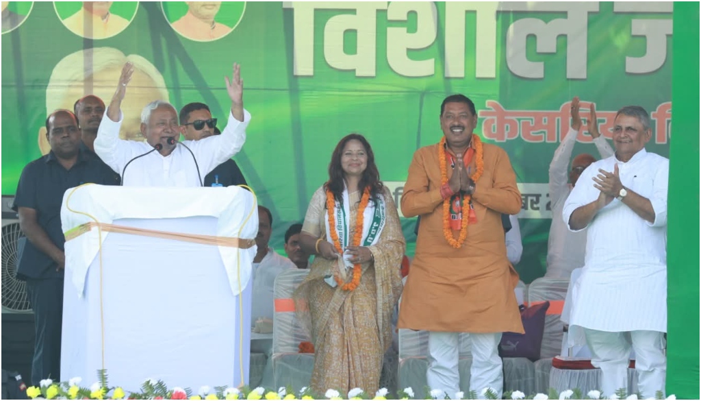 During his address, the Chief Minister also appealed to voters to support his party’s candidates in the upcoming assembly elections. He sought votes for Janata Dal (United) candidate Shalini Mishra from the Kesaria constituency and Bharatiya Janata Party candidate Sachindra Prasad Singh from Kalyanpur. In his signature style, Kumar raised his hand and took a collective pledge from women in the crowd to support his alliance candidates.
