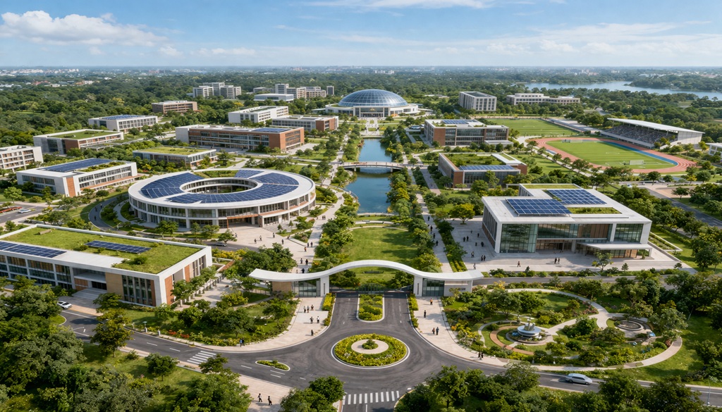 Planned amenities include smart classrooms, digital libraries, advanced laboratories, research centres, seminar halls, hostels, guest houses, sports complexes, and auditoriums. Residential facilities for faculty and staff will also be developed.