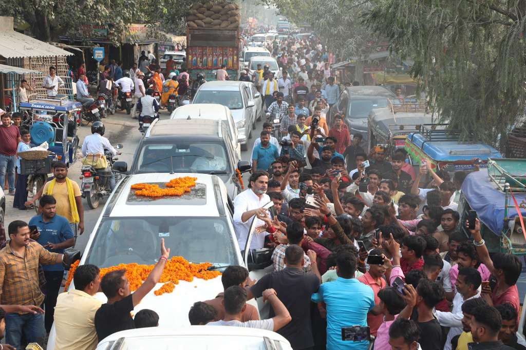 According to organisers, the crowd had assembled from 11am onwards, waiting eagerly for Kishor’s arrival. Instead of addressing the gathering, his convoy passed through Jagdishpur Chowk, where he waved to supporters during a brief roadshow before continuing towards Bettiah.