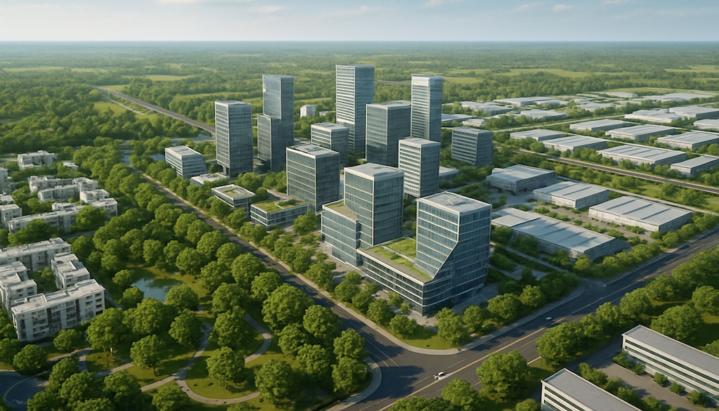 - 🌿 40% green cover will serve as a “green lung” between industrial & residential areas