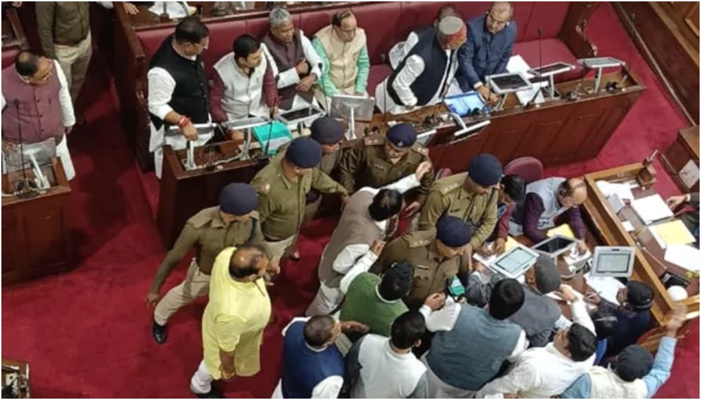 The disruption began soon after the House assembled, with opposition members raising slogans and halting proceedings. As the situation escalated, minister Ashok Choudhary attempted to address the Council, but was repeatedly interrupted, leading to a heated exchange with RJD member Sunil Singh.