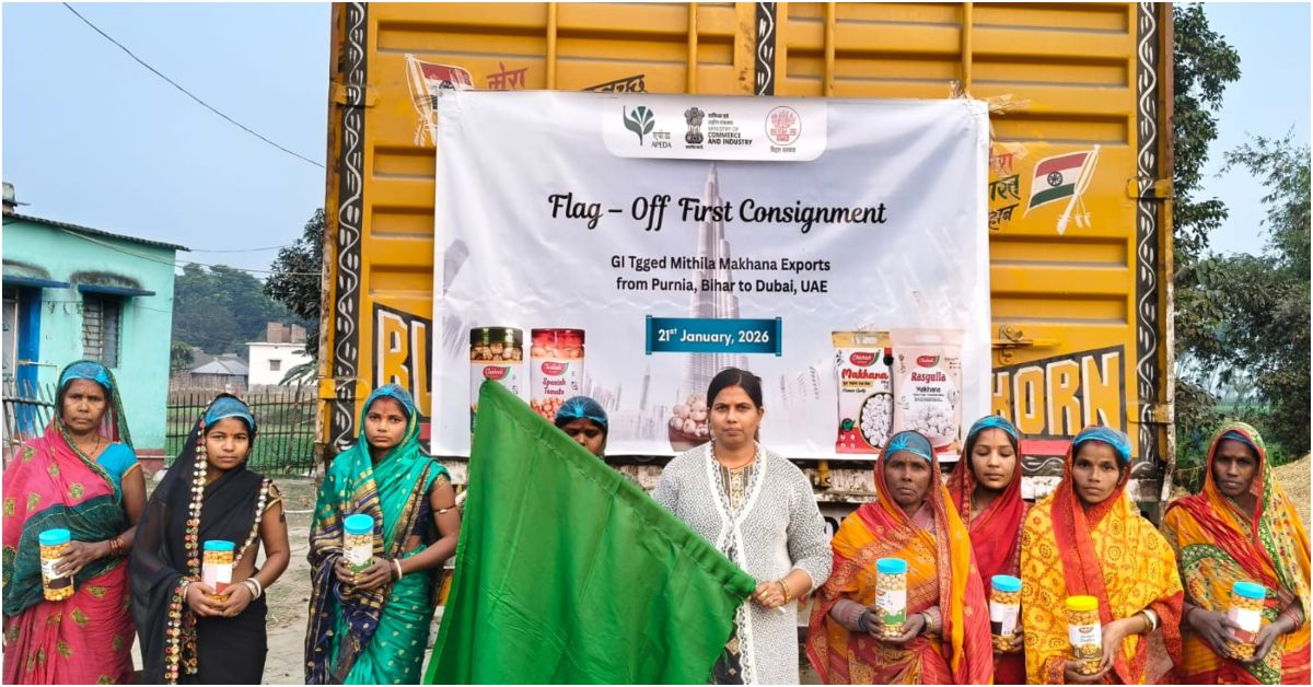Bihar has achieved a major milestone by exporting GI-tagged Mithila Makhana to Dubai via sea route for the first time, strengthening its global presence and boosting farmer incomes under government-supported development schemes.