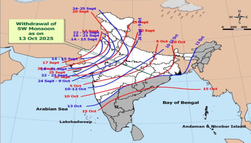 Patna: The Southwest Monsoon has officially completed its withdrawal from the entire state of Bihar on Monday, October 13, 2025, according to a press release issued by the Meteorological Centre, Patna.