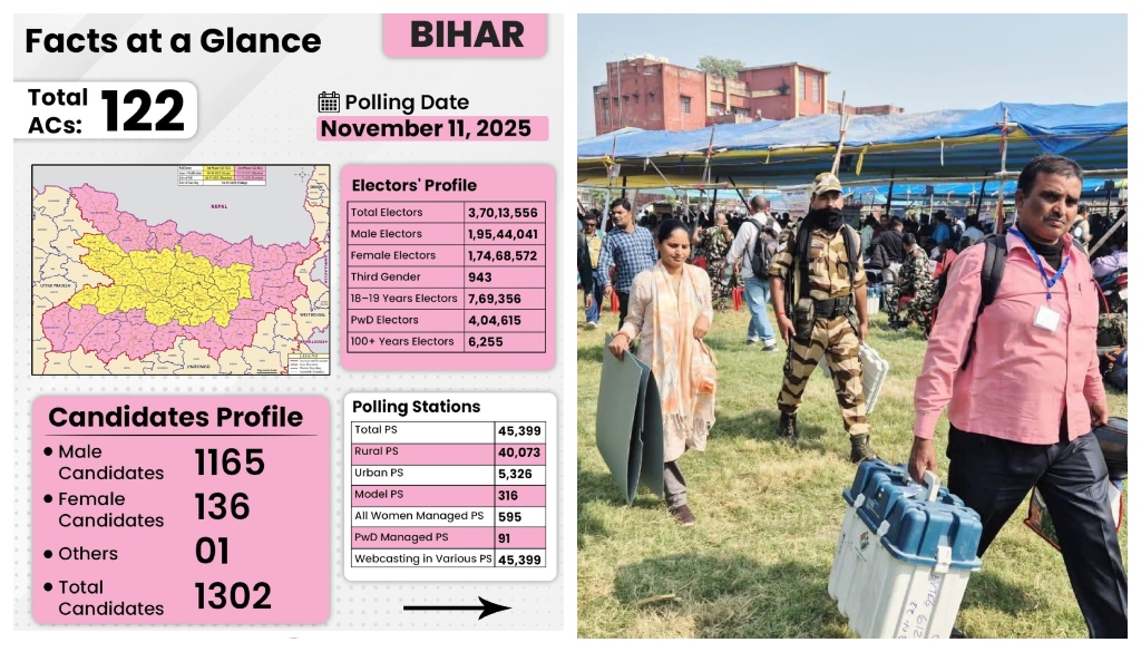 Polling will take place in 122 constituencies across 20 districts, with 1,302 candidates in the fray and 3.70 crore voters eligible to cast their ballots. While voting in most constituencies will continue until 6 p.m., the commission has restricted the timing in Chainpur, Rajauli (SC), Govindpur, Sikandra (SC), Jamui, Jhajha, and Chakai — all identified as sensitive due to Naxal activity.