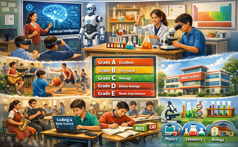 The government plans to replace the traditional marks-based evaluation with a grading system in schools. The modern education initiative has been designed with a five-year implementation target, during which periodic surveys will be conducted to assess improvements in the education system before further strategies are developed.