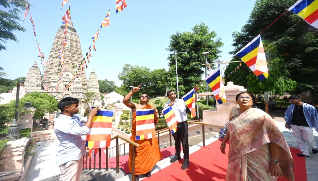 The premises of the Mahabodhi Temple are being decorated with colourful Buddhist flags, particularly around the sacred Mahabodhi Tree, where the Buddha is believed to have attained enlightenment. The wider temple complex is also being prepared to create an atmosphere of spiritual observance.