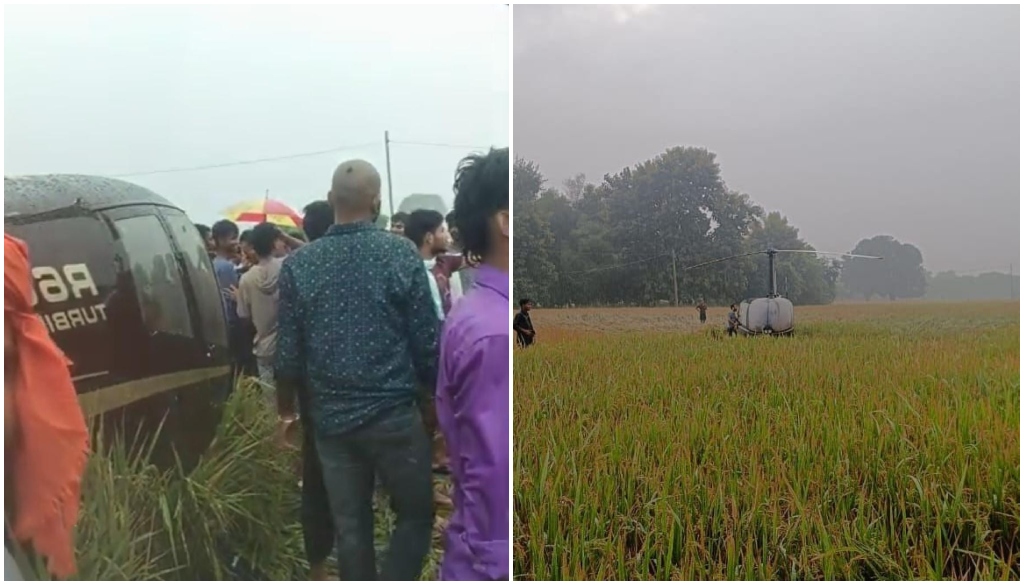 According to reports, the weather began to deteriorate around five to seven minutes after takeoff, reducing visibility. Acting swiftly, the pilot made the decision to bring the helicopter down safely in a nearby paddy field to avoid any mishap.