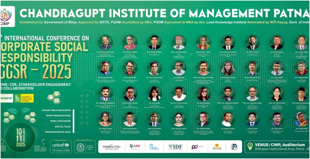 Patna: The Chandragupt Institute of Management Patna (CIMP) has announced that it will host the 5th International Conference on Corporate Social Responsibility (CSR) on 10 and 11 December 2025. The two-day event will take place on the CIMP campus in Patna and will bring together speakers and participants from across India and around the world. The conference aims to provide a platform for researchers, corporate leaders, policymakers and social sector organisations to exchange ideas on strengthening CSR practices.