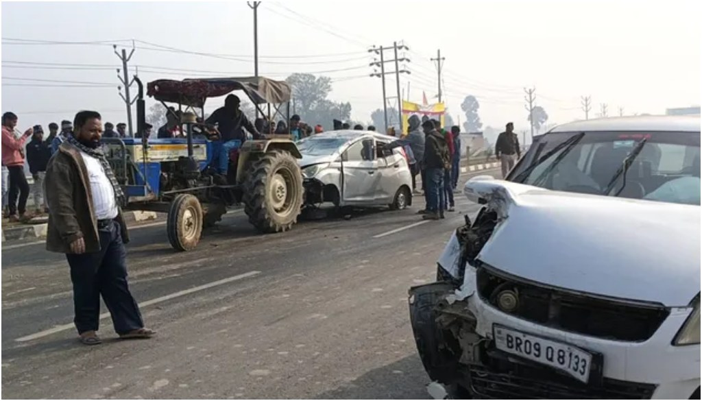 According to police, Naveen Kumar, a court clerk at Begusarai Civil Court, was returning home with his father after visiting Mahavir Temple in Patna when his car lost control at high speed. The vehicle hit the divider and veered into the opposite lane, colliding with a car driven by Roman Kumar, a medical representative from Tulsipur village, Navgachia police district. Roman Kumar’s wife, father-in-law, son, and driver were also in the vehicle.