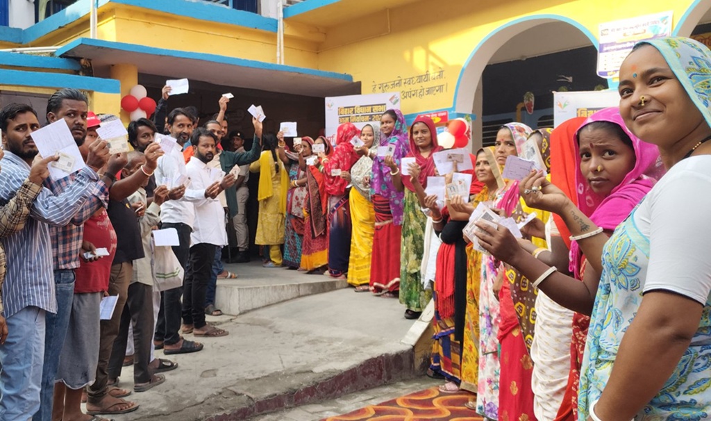 Patna: Polling for the first phase of the 2025 Bihar Assembly elections is currently underway across 18 districts, covering 121 constituencies. Voting began at 7 a.m. and will continue until 6 p.m. According to the Election Commission, out of these, 104 seats are witnessing direct contests, while 17 are facing three-cornered fights. The elections are being conducted in two phases for all 243 Assembly seats, with counting scheduled for November 14.