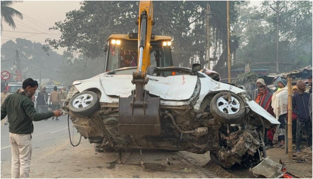 The crash took place near the electricity office in the Sadar police station area. The impact was so severe that the car was completely crushed, trapping all four occupants inside. Local residents alerted the police and ambulance services, and the victims were pulled from the wreckage with the help of bystanders.