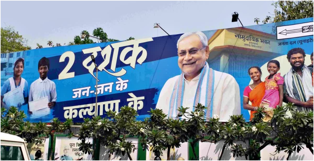 Patna: The Janata Dal (United) (JDU) has swiftly changed its public messaging following the resignation of Nitish Kumar as chief minister, replacing a forward-looking campaign slogan with one that reflects on his long tenure. At the party office in Patna, the earlier poster that read “Nitish Again: 2025 to 2030” has been taken down and replaced with a new hoarding that reads “Two Decades for the Welfare of Every Citizen”. The new visual prominently features Kumar and highlights his governance and development work over the past 20 years.
