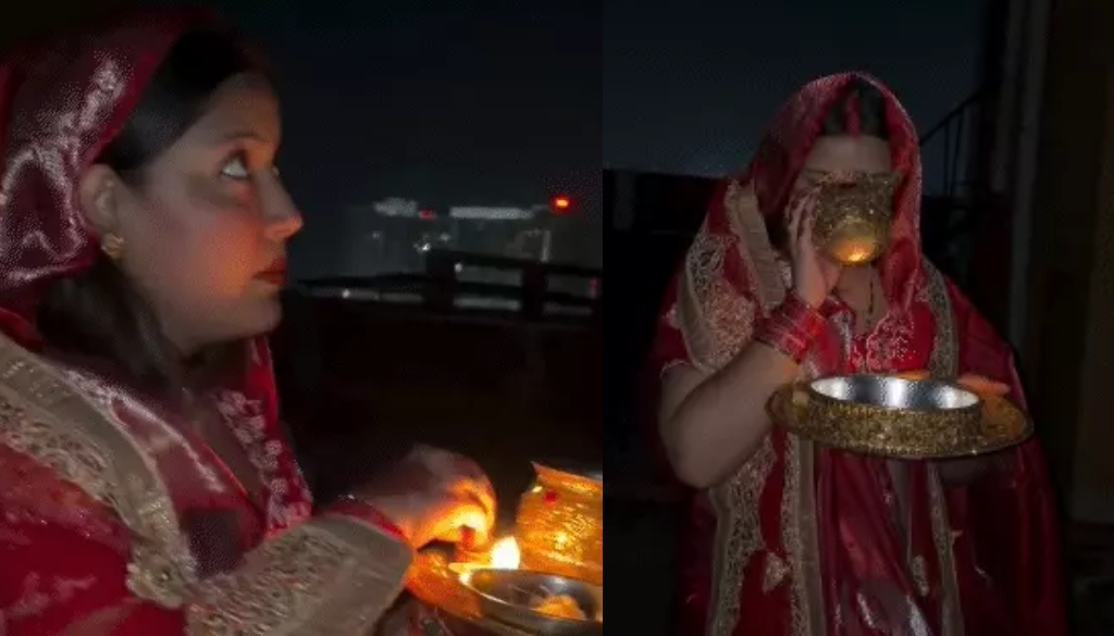 In a 39-second video posted on Instagram, Jyoti Singh is seen performing the traditional Karva Chauth puja dressed in a red saree, holding a decorated puja thali and sieve. She follows the rituals with devotion — looking at the moon through the sieve before breaking her fast by drinking water.