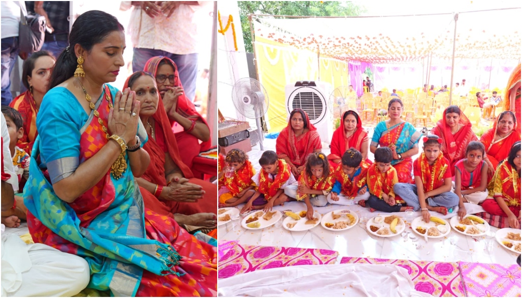 Rohtas: BJP Working Committee member Kiran Prabhakar, widely known as ‘Naukri Wali Didi’, conducted a Kanya Pujan ceremony at her office in Karakat on Tuesday, coinciding with Durga Puja Maha Ashtami. The event was attended by senior BJP and NDA leaders, along with local party workers.