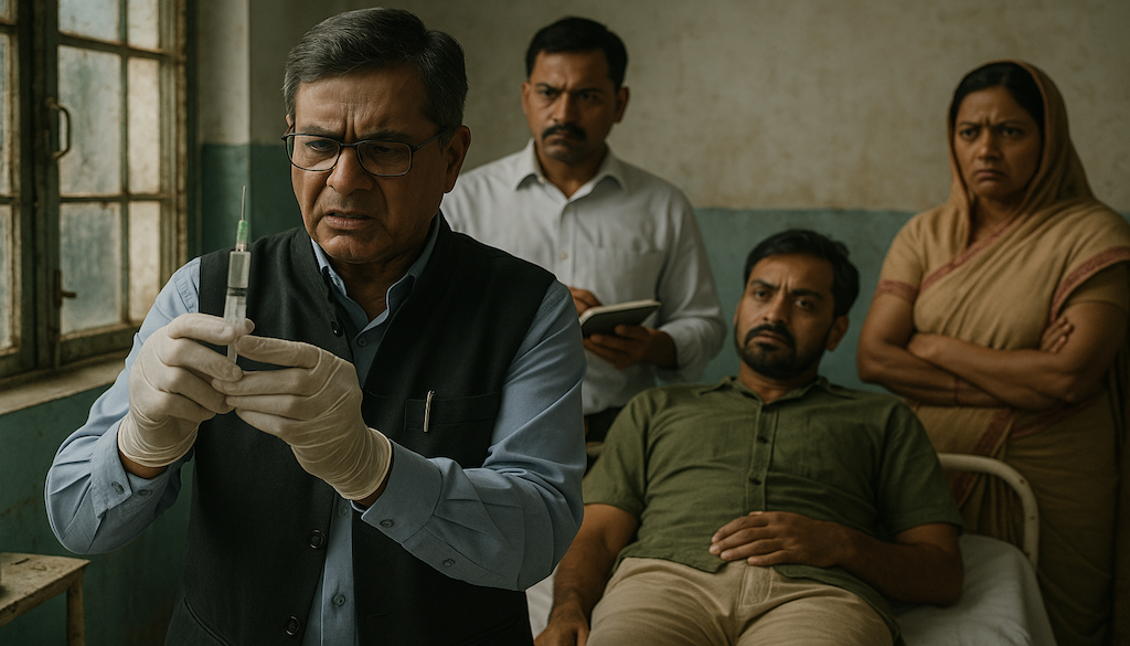 Dr Pankaj Kumar, however, sees an entirely different story. “This entire incident appears to be a conspiracy,” he declared, suggesting there is a shadowy cabal dedicated to ruining his reputation by engineering mysterious injections. He graciously admitted that irregularities exist at the CHC — a statement roughly equivalent to acknowledging that water is wet — and insisted the government is preparing strict action.