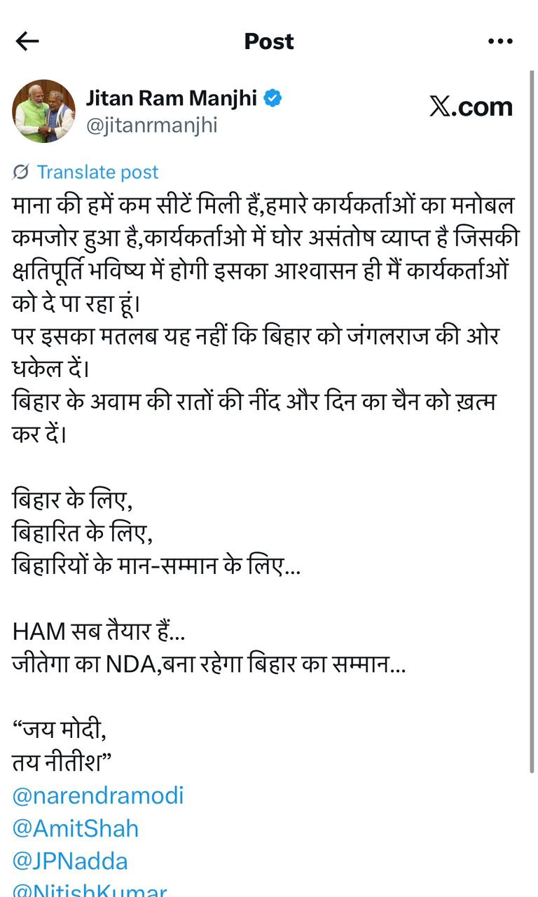 Manjhi declared that his party would contest from Bodh Gaya and Makhdumpur, both seats currently claimed by Chirag Paswan’s faction. His statement comes amid growing signs of discord within the NDA, even as the BJP publicly backed Chief Minister Nitish Kumar, who is reportedly unhappy with the current distribution of seats.