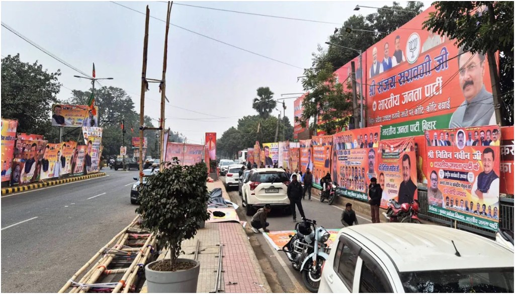 Banners, hoardings and posters have been erected across the city, particularly along the route from Patna airport to Miller School grounds, where a felicitation event is scheduled to take place. Several ceremonial arches have also been installed on the route, and party workers have decorated key stretches of the capital in saffron.
