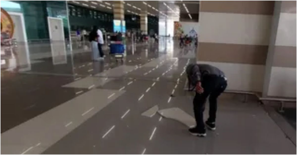 Airport director C P Dwivedi confirmed the incident, stating that maintenance work had been under way in the area and warning signage was already in place. He said the section has now been sealed off and assured that passenger safety remains the top priority.