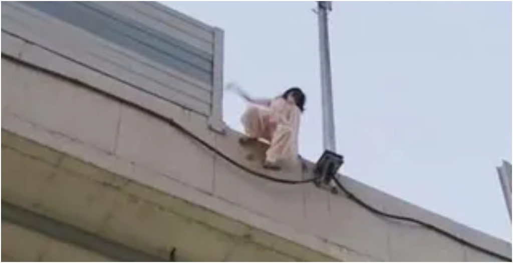 People present at the scene described the incident as very sudden and frightening. Witnesses said the woman sat quietly on the railing for nearly 15 seconds while looking down at the road. Someone noticed her and raised an alarm. Within moments, hundreds of people gathered below the flyover. Some people tried to rush toward her to stop her, but before anyone could reach her, she jumped. Thankfully, the people below were ready and caught her in time.