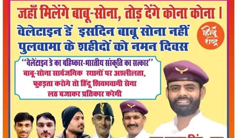The posters were issued in the name of an organisation calling itself Hindu Shiv Bhavani Sena. The message described Valentine’s Week as contrary to Indian culture and called for curbs on what it termed “obscenity” in public spaces. It demanded increased surveillance in parks, colleges and malls, and warned of social protests if its appeals were ignored.