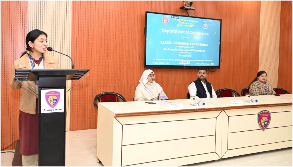 Patna: The Department of Commerce at Patna Women’s College, Autonomous, in partnership with St. Joseph’s College of Commerce (SJCC), Bengaluru, organised a career guidance programme for final-year B.Com students and commerce professionals on Thursday. The event took place at Carmel Hall and aimed to provide students with insights into postgraduate education and professional pathways.