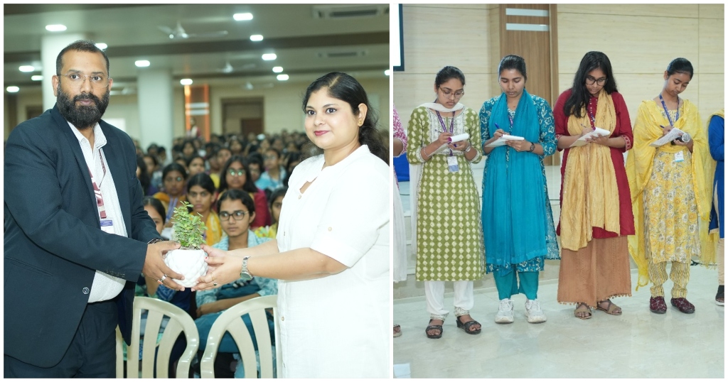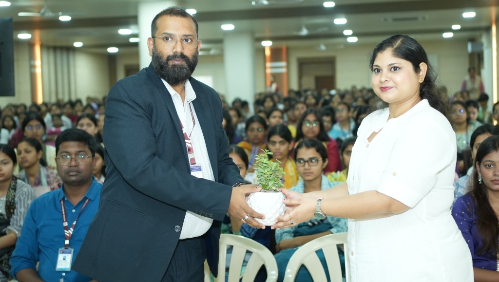 The session began with the felicitation of resource persons, including Ms. Akanksha, Personality Development and Communication Coach at Quad AI School of Technology & Management; Ms. Ayushi, Career Coach and Training & Placement Officer at Quad AI School of Technology & Management; and Ms. Ridhima Srivastava, Director and Founder of Weaver-Hand.