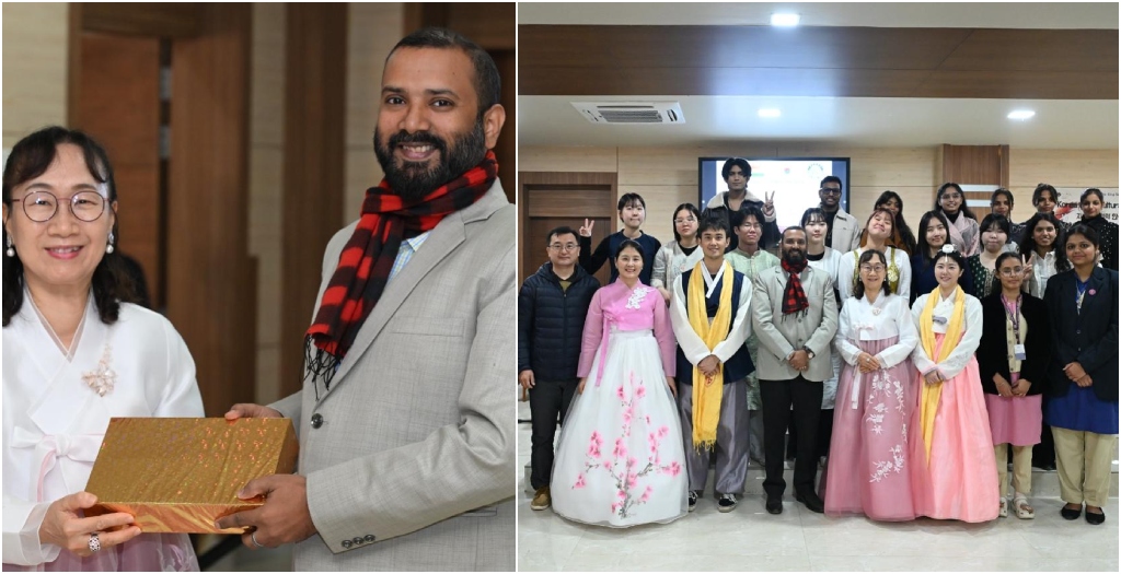 The exchange was made special by the presence of Grace Lee, coordinator of the King Sejong Institute, Patna, along with faculty members Taehyun Kim and Suhyun Kim from Handong Global University. Seven students from South Korea also joined the programme, interacting with Indian students and sharing their academic and cultural experiences. Their visit gave local students a rare opportunity to engage directly with peers from another country and learn about life and education in South Korea.