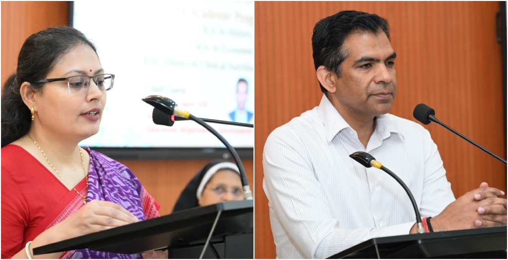 The ceremony started with the lighting of the lamp by Shri Ajay Yadav, Principal Dr Sister M Rashmi, and heads of the three departments along with student representatives. The principal honoured the chief guest with a plant sapling and a memento. She thanked all teachers for their hard work in starting these new courses and wished students the best for their future studies.