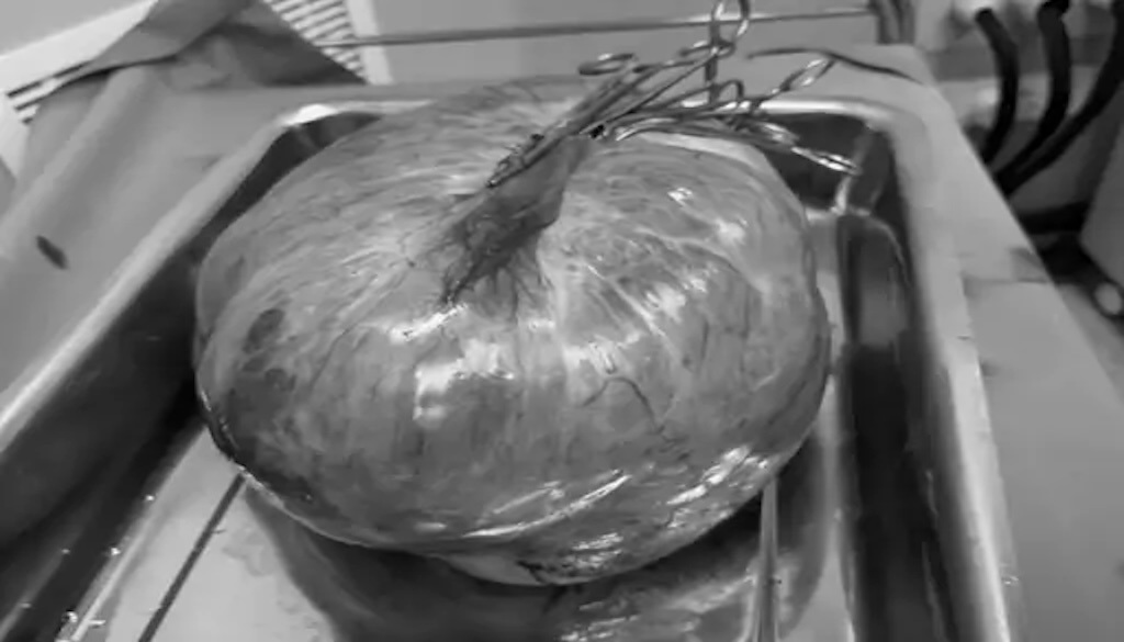 The patient had been experiencing abdominal swelling, pain and a persistent feeling of heaviness for an extended period. Initially dismissed as minor discomfort, the symptoms worsened over time, with the swelling becoming severe enough to affect her mobility and daily activities.