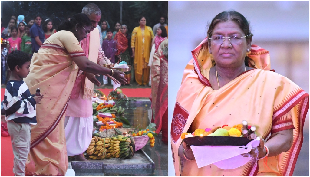 President Droupadi Murmu participated in Chhath Puja celebrations in the President’s Estate where devotees offered Arghya to the setting Sun. The President prayed for the well-being and prosperity of fellow citizens. pic.twitter.com/RwktBsPKXv
