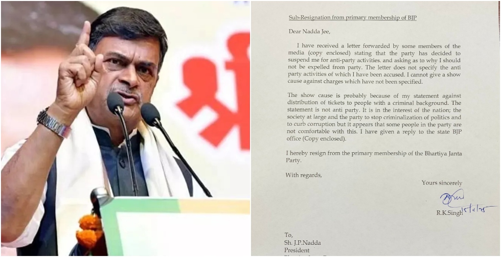 “Better to Drown Than Vote for Criminals”: RK Singh Attacks BJP After Suspension, Sends Resignation Letter