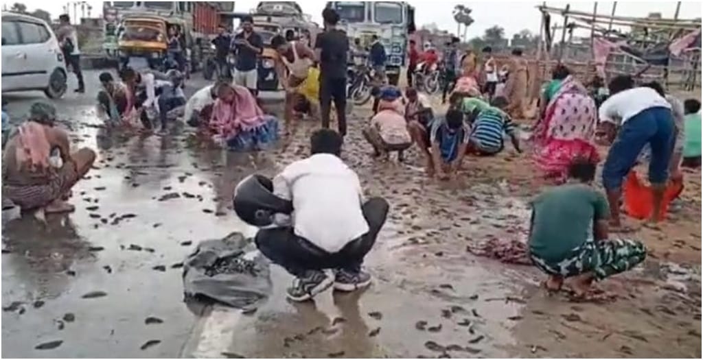 Video footage from the scene, which has since gone viral, shows Ritesh’s body lying on the road while several people gathered around the overturned van and began looting fish from it. The images have drawn strong criticism online, with many condemning the lack of humanity shown by onlookers.