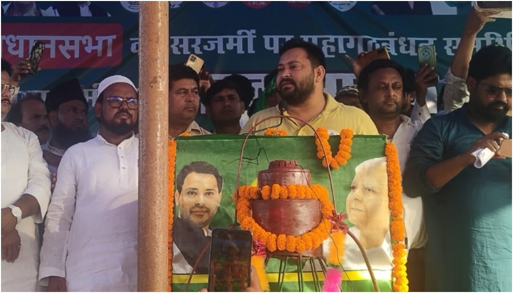 Addressing thousands of supporters, the RJD leader urged voters to deliver a “landslide victory” for Saud Alam to ensure the formation of a Grand Alliance government in Bihar. “Our uncle is now unconscious, so only the conscious public will take care of Bihar,” he quipped, taking a swipe at Nitish Kumar.