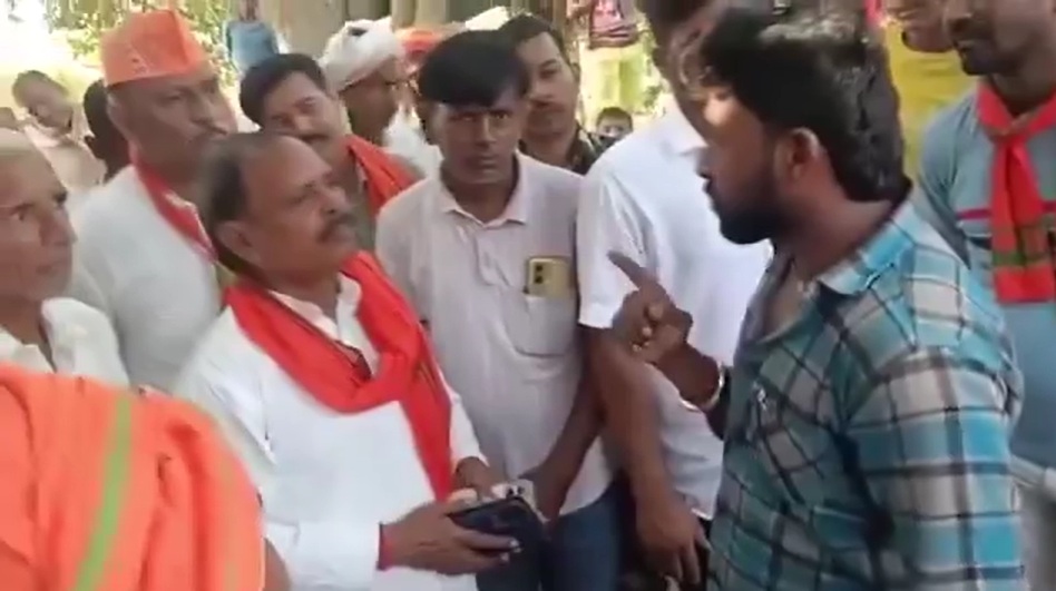The incident occurred while the MLA was touring a village with his supporters. The young man, identifying himself as Shyamsundar, son of Ramashankar Bind, questioned the legislator, asking, “Where were you for five years after winning the election?” He further pressed the MLA to say how many times he had visited the village to address people’s problems.