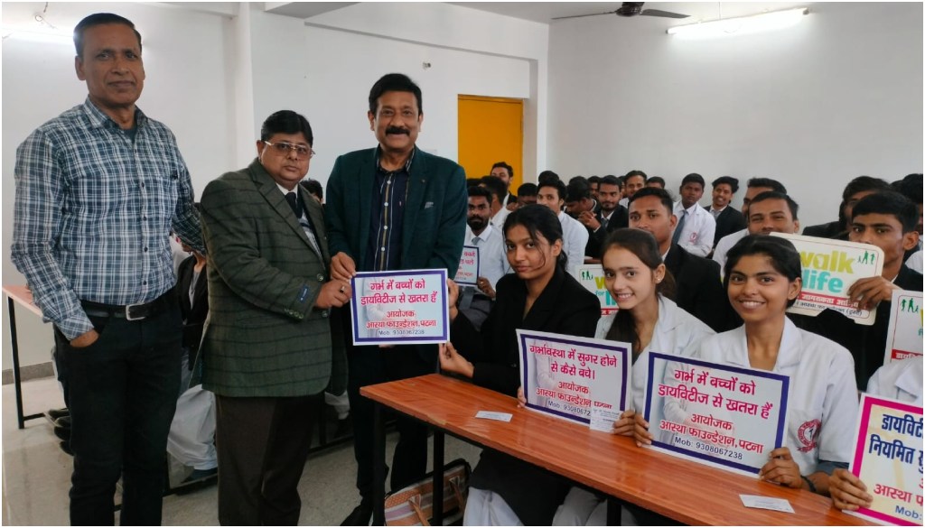 Patna: Addressing paramedical students at Patna Paramedical College during the “Walk for Life” programme organised by the Aastha Foundation, senior physician Dr Diwakar Tejaswi highlighted the growing challenge of diabetes, calling it a serious lifestyle-related disease with rapidly increasing prevalence among young people.