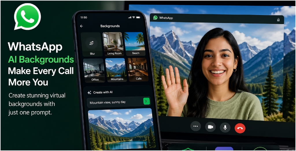 • WhatsApp brings AI-powered video call backgrounds—turn your room into mountains, beaches, or a professional office in seconds